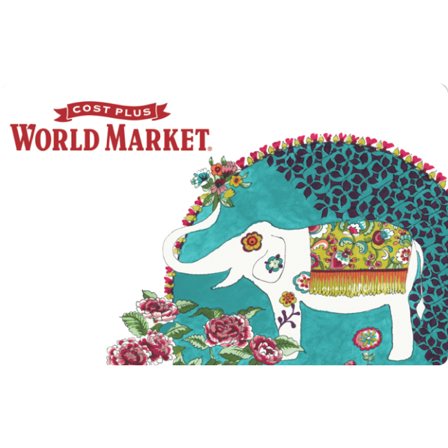 Present this card at time of purchase; the available balance will be applied toward your purchase. Good at any World Market location or online at worldmarket.com. This gift card is redeemable for merchandise only and may not be redeemed for cash, except where required by law. For details, see www.worldmarket.com. If requested, cash refunds will be provided for low balance gift cards as required by state law. There are no service fees or expiration dates connected with the use of this card. Card cannot be redeemed until activated. World Market is not responsible for lost or stolen cards.